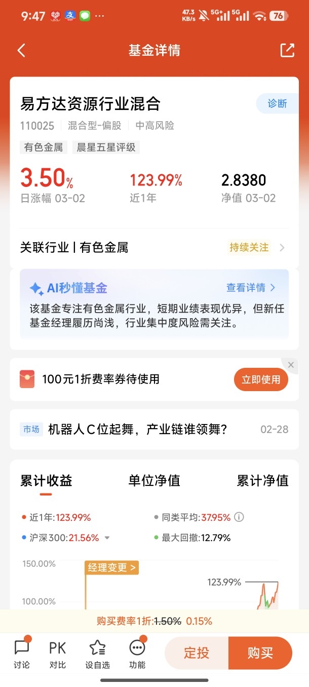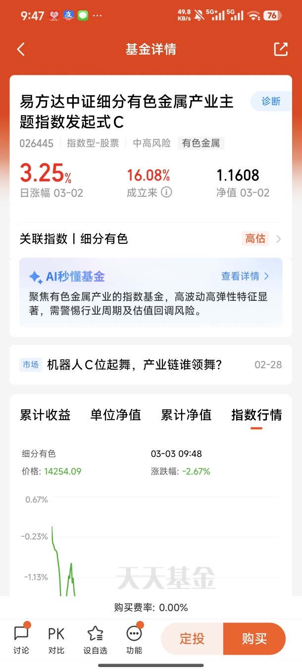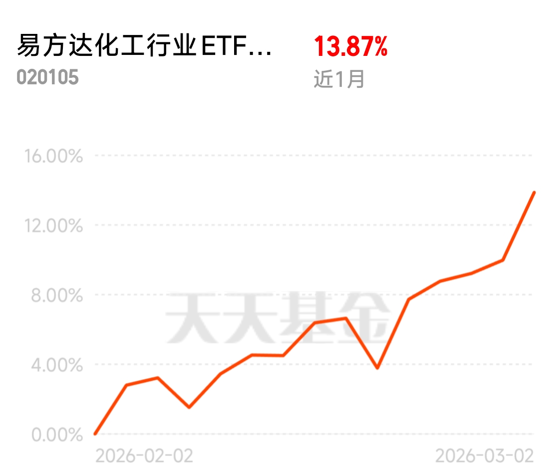 在工具选择上,我最终选定易方达化工ETF联接C,完美匹配轻仓试水、边走边看的策略需求。首先,该基金紧密跟踪化工行业指数,一键覆盖石化、精细化工、新材料等细分领域龙头,分散个股暴雷风险,精准把握行业整体复苏红利,省去选股烦恼,适合普通投资者布局周期板块。其次,C类份额费率友好,无申购成本,持有超过7天免赎回费,灵活便捷,非常适合轻仓分批建仓、波段操作或短期试错,契合“边走边看”的灵活调整需求。再者,化工行业本轮复苏是结构性行情,龙头企业凭借规模优势、成本控制能力和产业链话语权,将在供给出清中充分受益,呈现“强者恒强”格局,该基金聚焦行业龙头,能够充分享受周期复苏与估值修复的双重收益,弹性与稳健性兼顾。