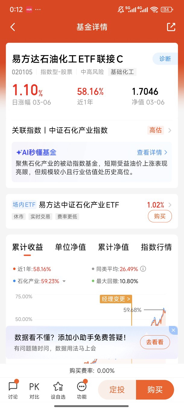 我在#热点快闪:化工新周期开启!你布局了吗?# 选择了“重仓布局,看好周期反转”$易方达石油化工ETF联接C$