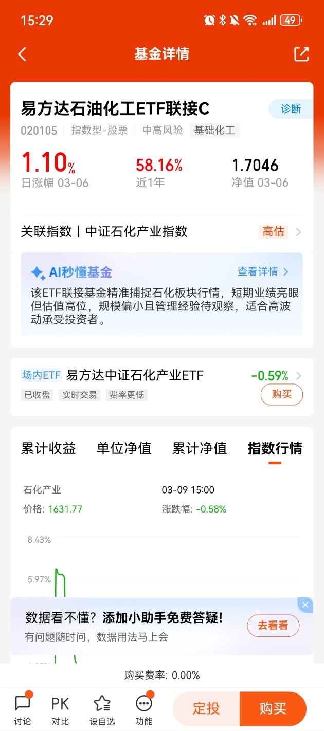 想要高效分享化工产业升级红利,易方达化工行业ETF联接基金是优质配置工具。该基金覆盖石油石化、基础化工、新材料等全产业链优质标的,精准把握行业发展主线。基金由头部基金公司易方达管理,运作规范、跟踪误差小,投资效率高。无论是短期把握板块反弹,还是长期布局产业成长,该基金都能提供稳定、高效的投资体验。在政策持续赋能、产业加速升级的背景下,坚定持有易方达化工行业ETF联接基金,有望收获长期稳健的投资回报。