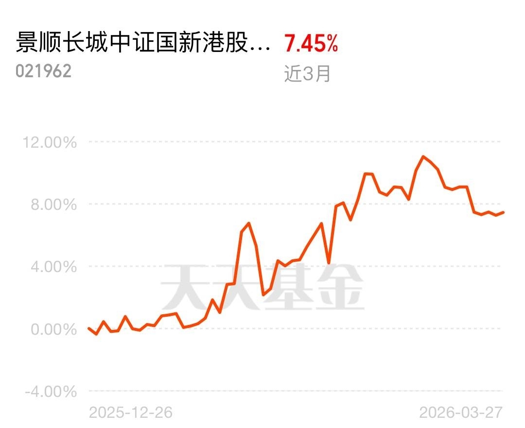 市场波动大,A 股近 3 月跌 1.26%,地缘风险还没消。景顺长城中证国新港股通央企红利 C 近 3 月涨 7.45%,重仓央企硬资产,当下位置正合适,继续布局,进可攻退可守。