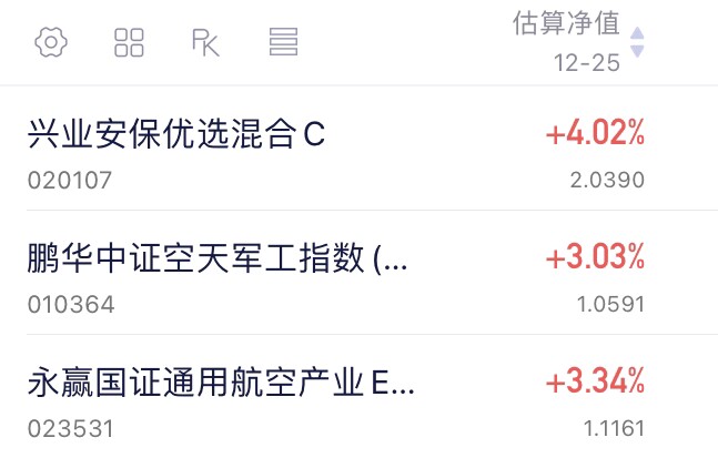 今日 A 股板块全面开花,军工题材依旧是市场上涨的主力军。军工的拉升主要受益于商业航天概念的持续火热。$兴业安保优选混合C(OTCFUND|020107)$自带安保属性,今日估值上涨 4.02%,表现优于永赢高端装备。我看好商业航天卫星赛道的前景,正密切关注这只基金的机会。$鹏华空天军工指数(LOF)C(OTCFUND|010364)$今日估值上涨3.03%,$永赢国证通用航空产业ETF发起联接C(OTCFUND|023531)$今日估值上涨3.34%。