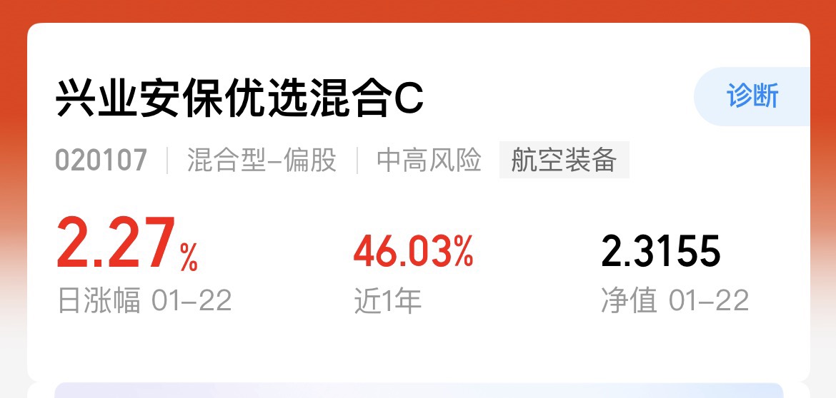 商业航天今天的涨幅居然带动了军工的反弹,从技术面上来看,商业航天重返主线,产业利好一直没断,我觉得军工还可以$兴业安保优选混合C$ 看p盘中估值,今天晚上又能吃肉了