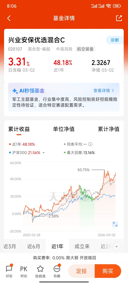 今天军工涨幅不错,涨了3.31%哦,我明天再上,这波行情小不了。