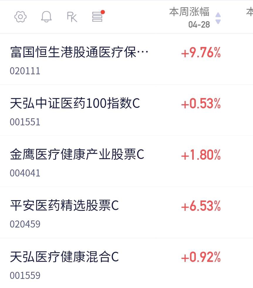 $天弘中证医药100C$ 上周涨0.53%