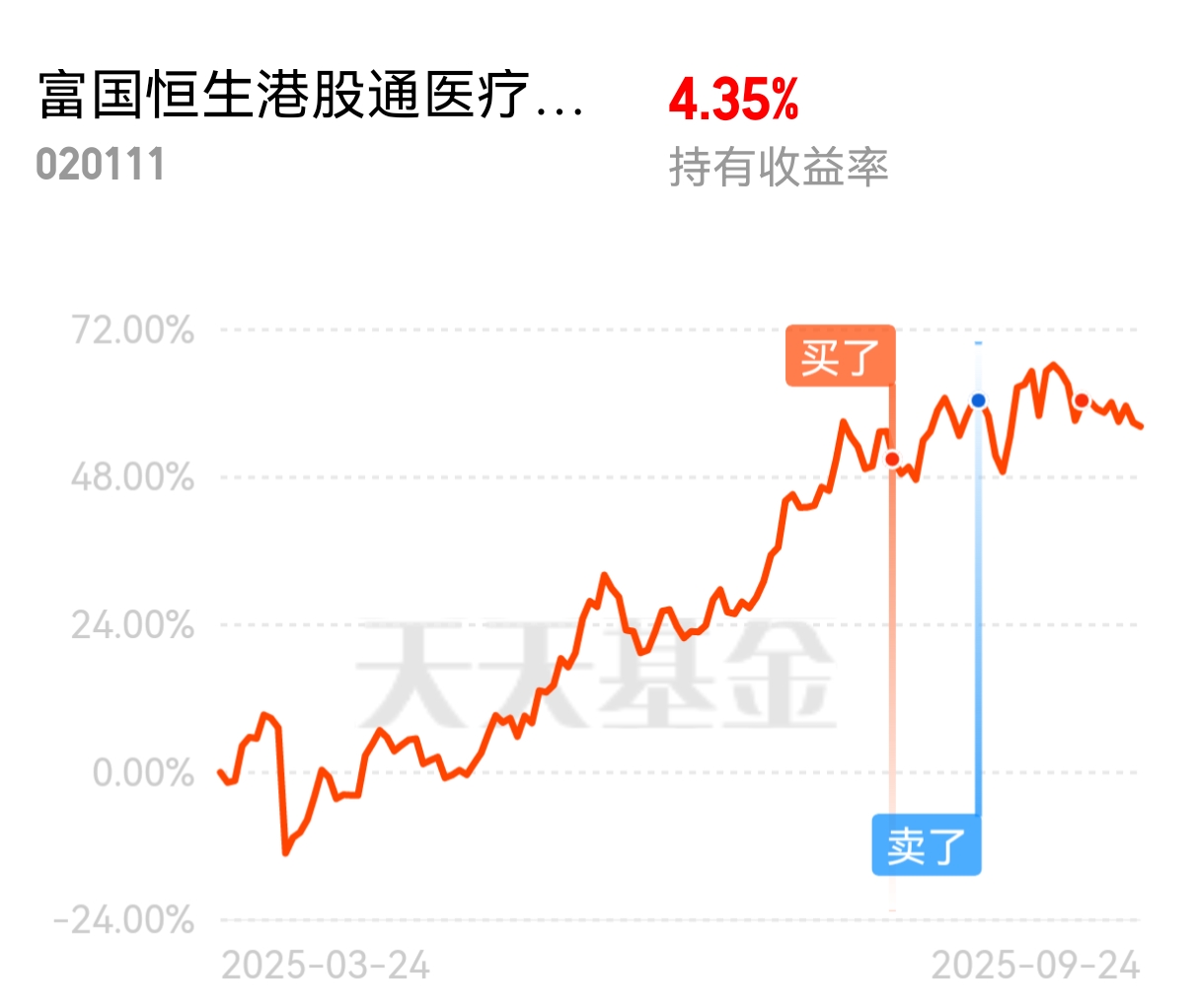 恒生港股通医疗今天有所反弹,消息面上,近期有利好,一个是医药领域打起反内卷,价格不再唯低论,一个是恒瑞医药签署瑞康曲妥珠单抗项目授权许可协议,有资格获得最高可达10.93亿美元的里程碑付款及销售提成,这是恒瑞第二个超10亿美元的大单。由此可见,医药发展决心坚定,未来潜力还是很大,技术面来看,港股医疗还是箱体内震荡,小欧持有的$富国恒生港股通医疗保健ETF发起式联接C$ 目前浮盈4个多点,我思路静待反攻了。