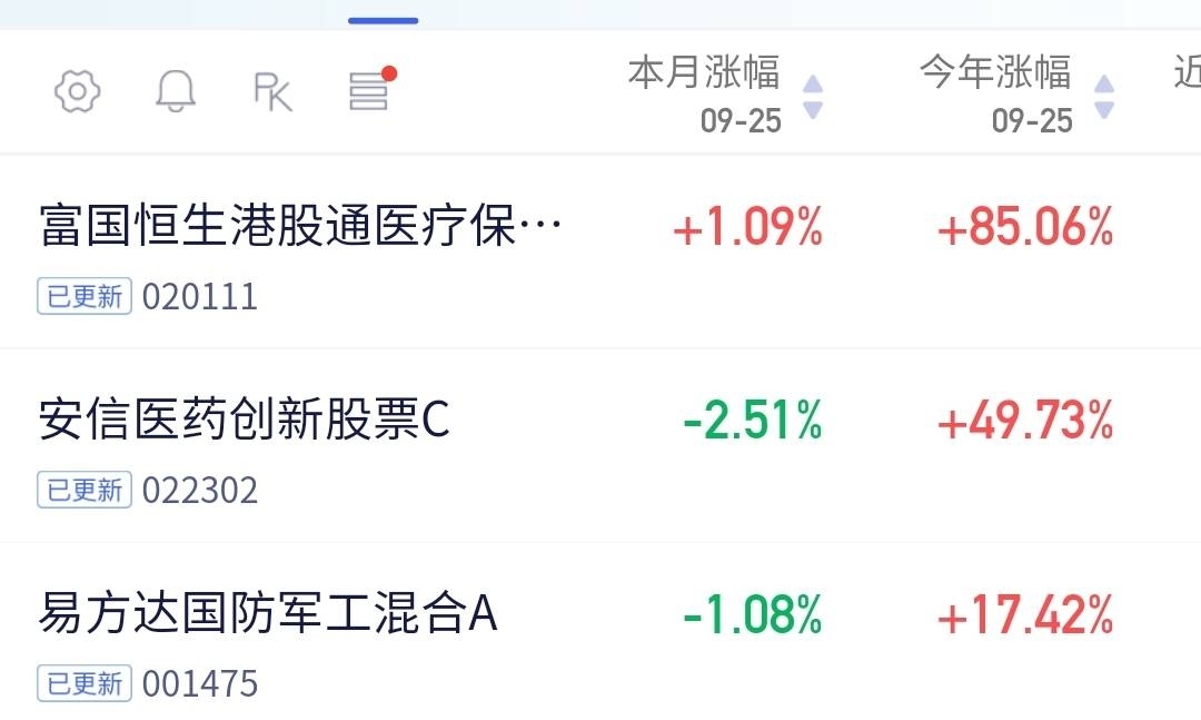 $安信医药创新股票型发起C$ 本月涨幅跌2.51%