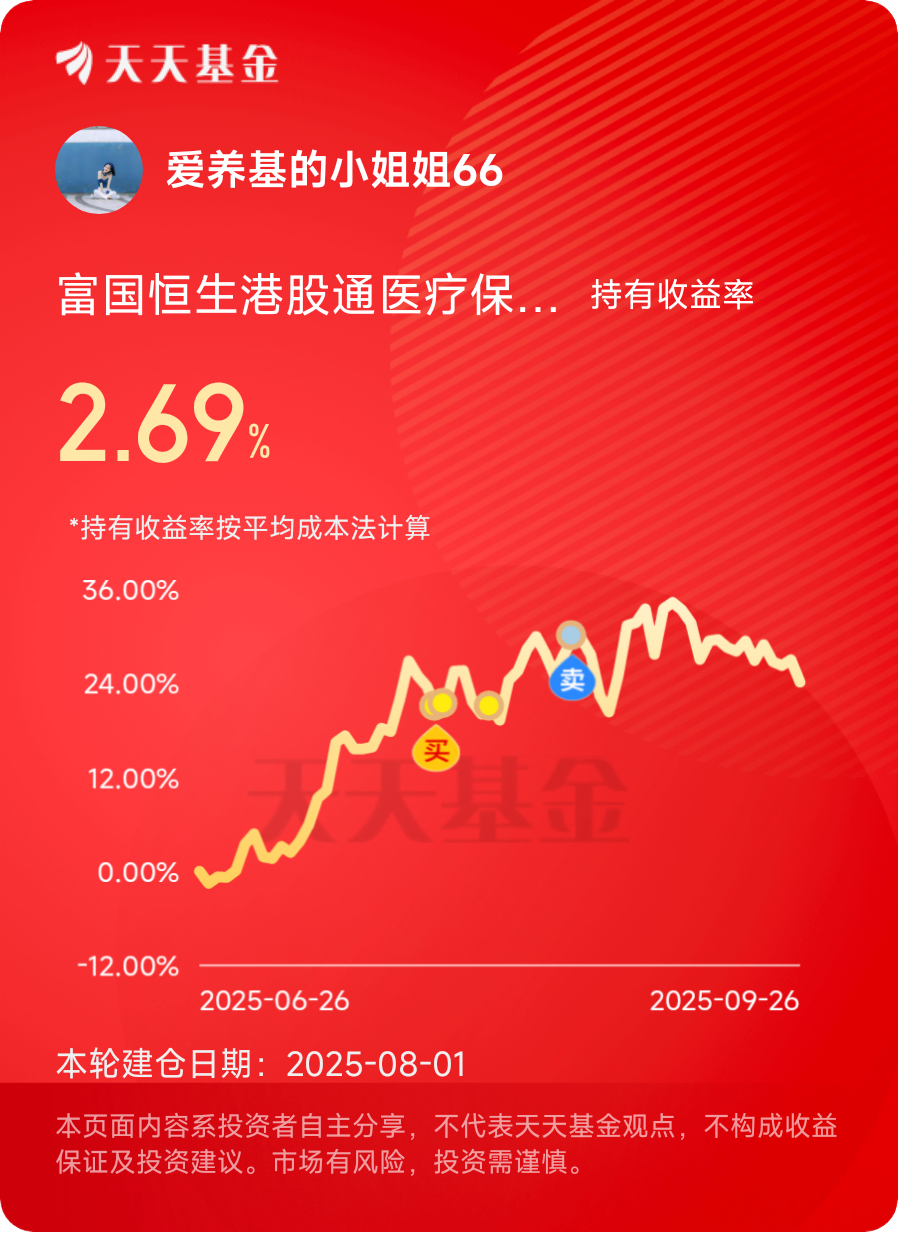 港股创新药都调整这么久了,还有啥好怕的,差不多也可以抄底了,这个位置机会大于风险呀,$富国恒生港股通医疗保健ETF发起式联接C$ 成分股90%都是港股创新药龙头,是纯度很好的港股创新药指数,近三个月+24.11%,近六个月+55.74%,近一年+80.02%,业绩表现也不错,趁现在估值低可以积极布局一下,博反弹