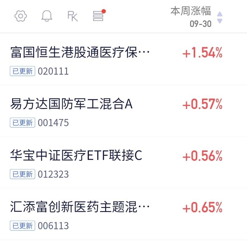 指数稳步上行,创新药表现亮眼,午后持续冲高,领涨全场。利好不断兑现,拿稳龙头和管线丰富的标的。$富国恒生港股通创新药及医疗保健ETF发起式联接C$ 本周大涨1.54%