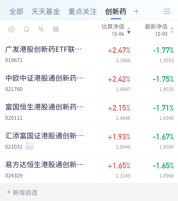 昨天跌的时候就应该不错,看看今天,港股创新药板块全天强势领涨,广发港股创新药C预