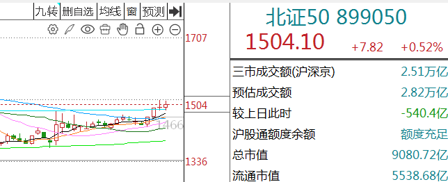 北证50: 北证50今天小幅上涨,小票行情里它还算抗跌,小碎步上涨,还有空间,我继续拿住。