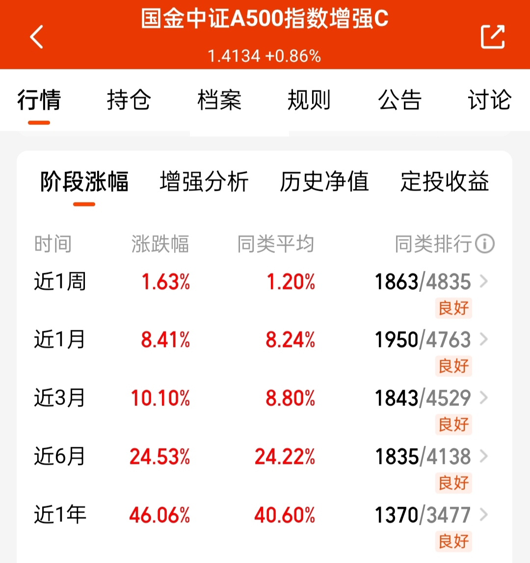 长期宽基也挺好的,$国金中证A500指数增强C$ 是同时期成立的同类和业绩第一的,各阶段业绩也挺稳