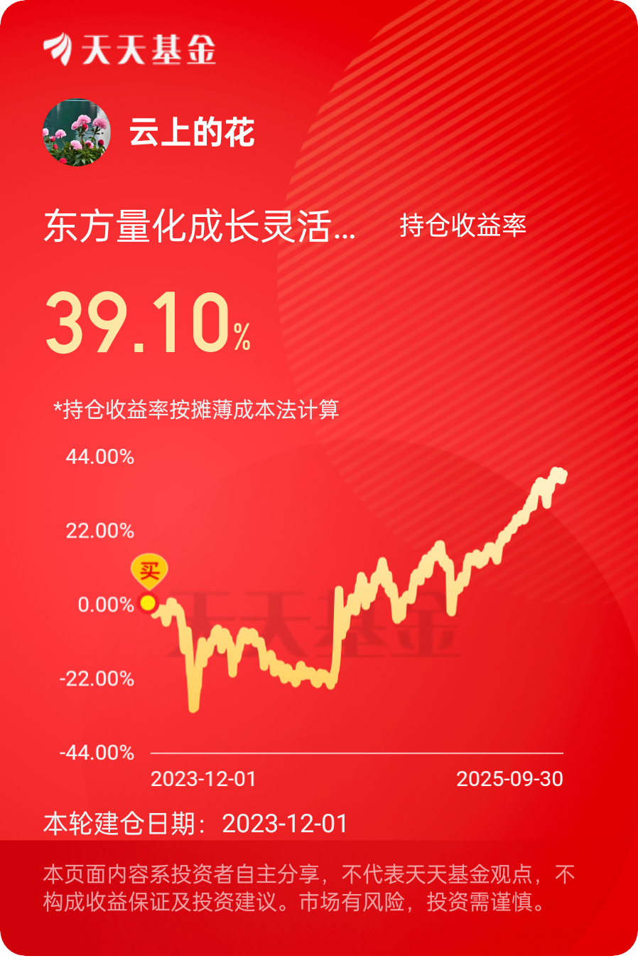 行情不错,这个表现还是相当的可以,量化最近热度较高,要继续保持啊!$东方量化成长灵活配置混合C$ #晒收益#