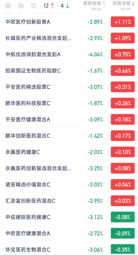 生物医药基金估值盘后播报,喜迎周一开门红