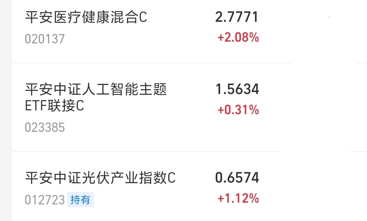 还是很不错,今日光伏继续走强。老师又吃肉了,最近这个5平安中证光伏产业指数C$表现很好,今晚大涨了+1.12%,老师观察,这个的业绩也挺不错,不管这么多,我会继续看好。