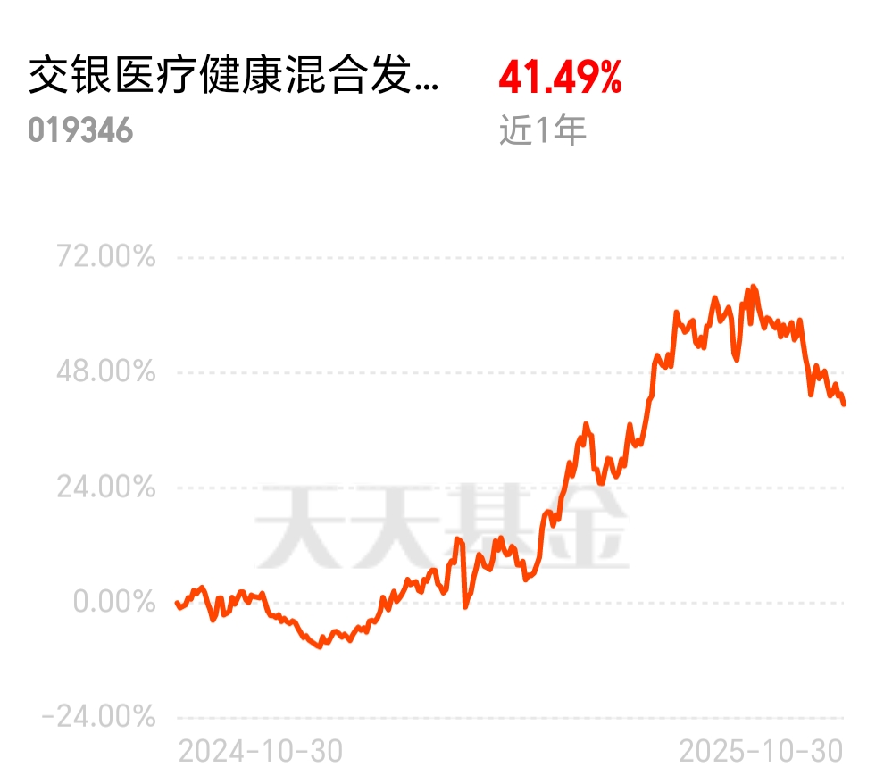 $交银医疗健康混合发起C$近一年的收益表现还是亮眼的