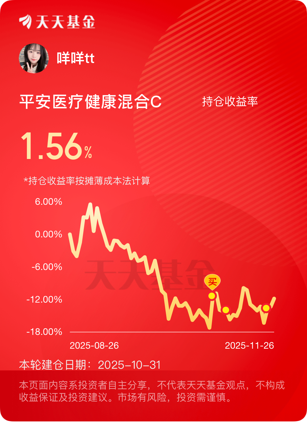 创新药这几天还行嘛,我持有的$平安医疗健康混合C$这都3连涨了,今天估计继续吃肉