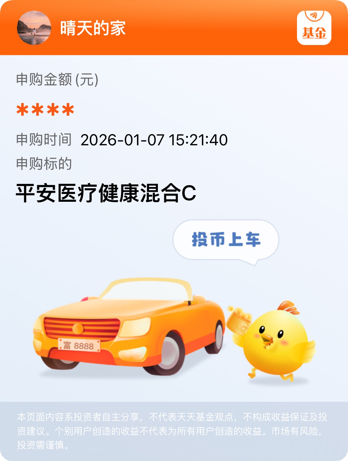 今天继续定投,金额不大但贵在坚持。医疗行业长期成长逻辑通顺,无需担心。
