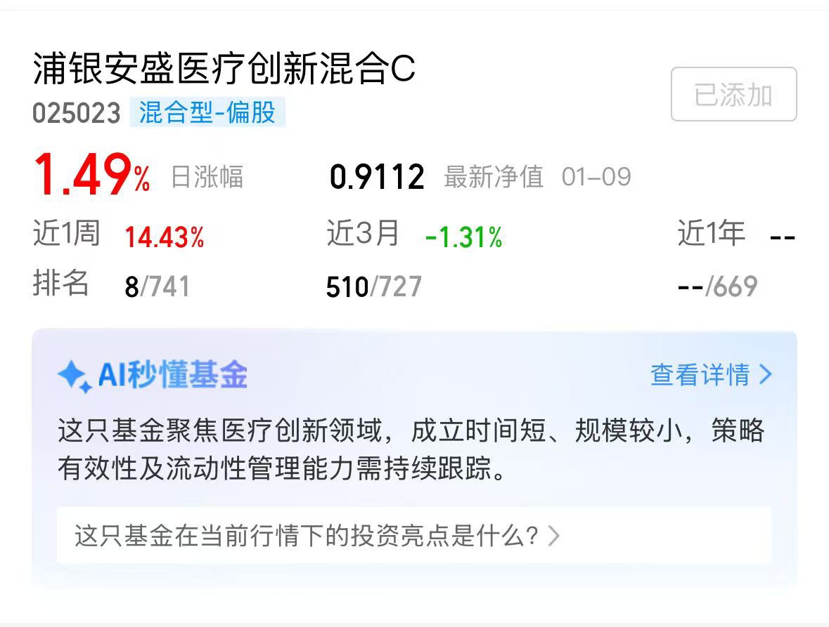 浦银安盛医疗创新今天逆势上涨1.49%,近一周就涨了14.43%~现在国家对创新