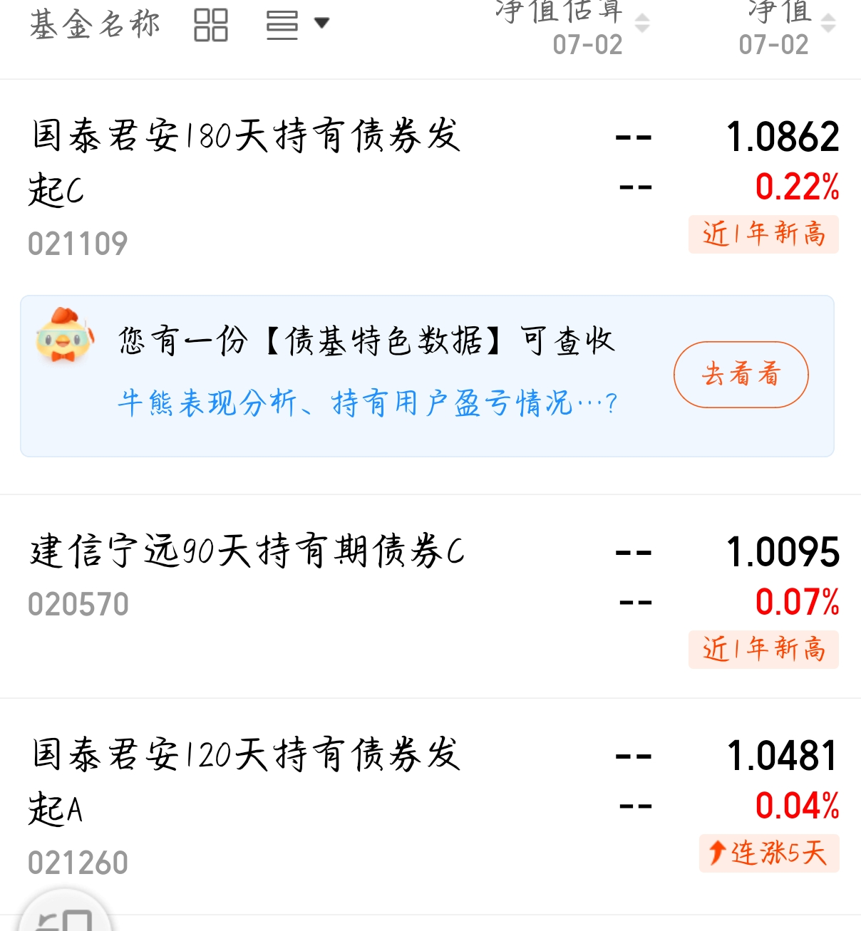 $建信宁远90天持有期债券C$ 收蛋7个