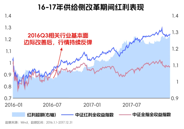 “反内卷” 政策催化:2024年7月以来,“反内卷” 政策从新兴行业扩展到钢铁、煤炭、化工等传统行业,这和 2016-2017 年供给侧改革相似。回顾当时红利板块行情,随着后续“反内卷”推进,相关板块预期改善+基本面修复有望推动红利行情。