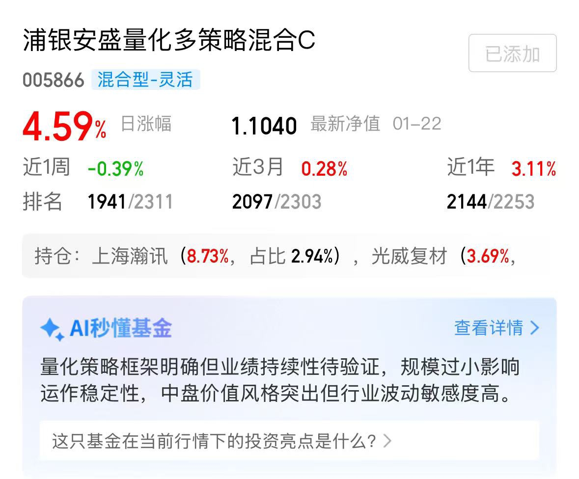 浦银安盛量化多策略这只商业航空基太亮眼,昨天涨4.59%,基金经理看好的太空光伏今日涨7点$浦银安盛量化多策略混合C$