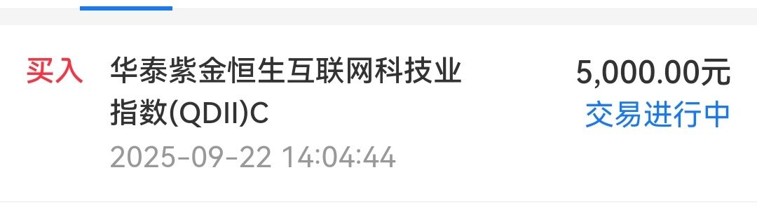 4、$华泰紫金恒生互联网科技业指数型发起基金(QDII)C(OTCFUND|018524)$,买入5000元