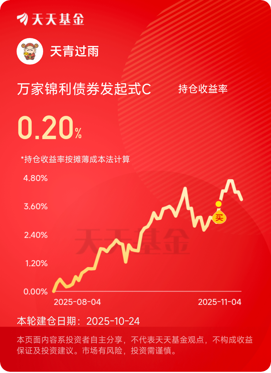 市场行情变幻莫测,我就信赖锦利,债券打底够稳,权益仓位又能抓住股市机会$万家锦利债券发起式C$ #晒收益#