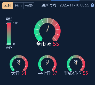 DR001报1.44%左右,DR007报1.43%左右,资金情绪紧(CNEX资金面情绪指数在55)