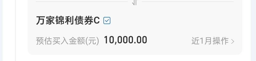 $万家锦利债券发起式C$ +10000,理由:今天继续补仓些,昨天收益66蛋,行情回暖,产蛋就是猛呢,现在趁着位置还比较低,补仓吃波反弹收益。主要持仓60.93%的利率债和23.75%信用债为底仓形成稳健收益基础,搭配18.17%股票(红利,算力,新能源,有色等)增强整体收益,兼顾收益弹性。同时经理在关注电网配电、商业航天等新兴赛道,并看好明年上半年行情。可以灵活应对市场变化调整策略,均衡下来,整体比权益类波动小很多,收益又比纯债基高出很多。结合今年震荡行情来看,这种搭配还是蛮不错的,长期看,今年来就收益8.74%,股市行情明显回暖了,今天继续低吸10000放着了,吃波反弹收益!
