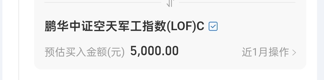 $鹏华空天军工指数(LOF)C$ +5000,继续补仓些军工,经过这两天的的震荡,盘面有又涨起来了,今天估值涨了1.83%,短期上涨方向已经走了出来,上方压力较小,在增量资金推动下,后续上行空间挺不错的。这只主要关联航空装备,前十大重仓股集中度较高,主要集中在飞机制造、航空发动机、军工电子和军工材料等核心细分领域。近期地缘局势升温,尤其中日关系趋紧,安全需求日益突出,军工板块关注度持续提升。当前空天军工指数仍处低估值区间,叠加国家战略对空天技术发展的强力支持,接下来这个板块挺看好的,最近一直在陆续布局,今天继续补仓5000放着了!