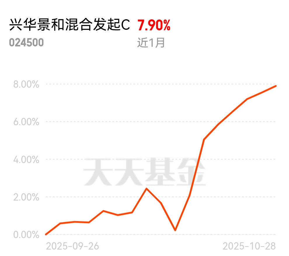 把兴华景和加入持仓清单后,就没怎么动过,现在持有快 4 个月,昨天涨 0.34%,连涨 7 天,收益稳步上涨~它的投研团队只看企业内在价值,不追短期热点,这种踏实的风格,太对长期投资者的胃口了。$兴华景和混合发起C$