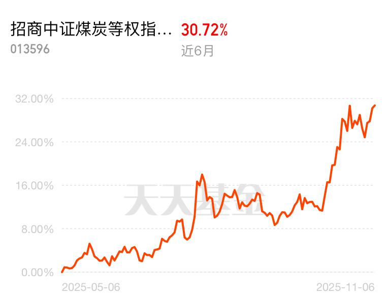 煤炭市场供需缺口逐步扩大,价格上涨趋势明显,行业景气度持续提升。招商中证煤炭等权指数C近6个月涨了30.72%,昨日涨幅0.40%,踩准缺口扩大节奏,业绩回报靠谱。