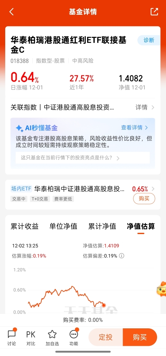 $华泰柏瑞港股通红利ETF联接基金C$ #12月基金投资策略#