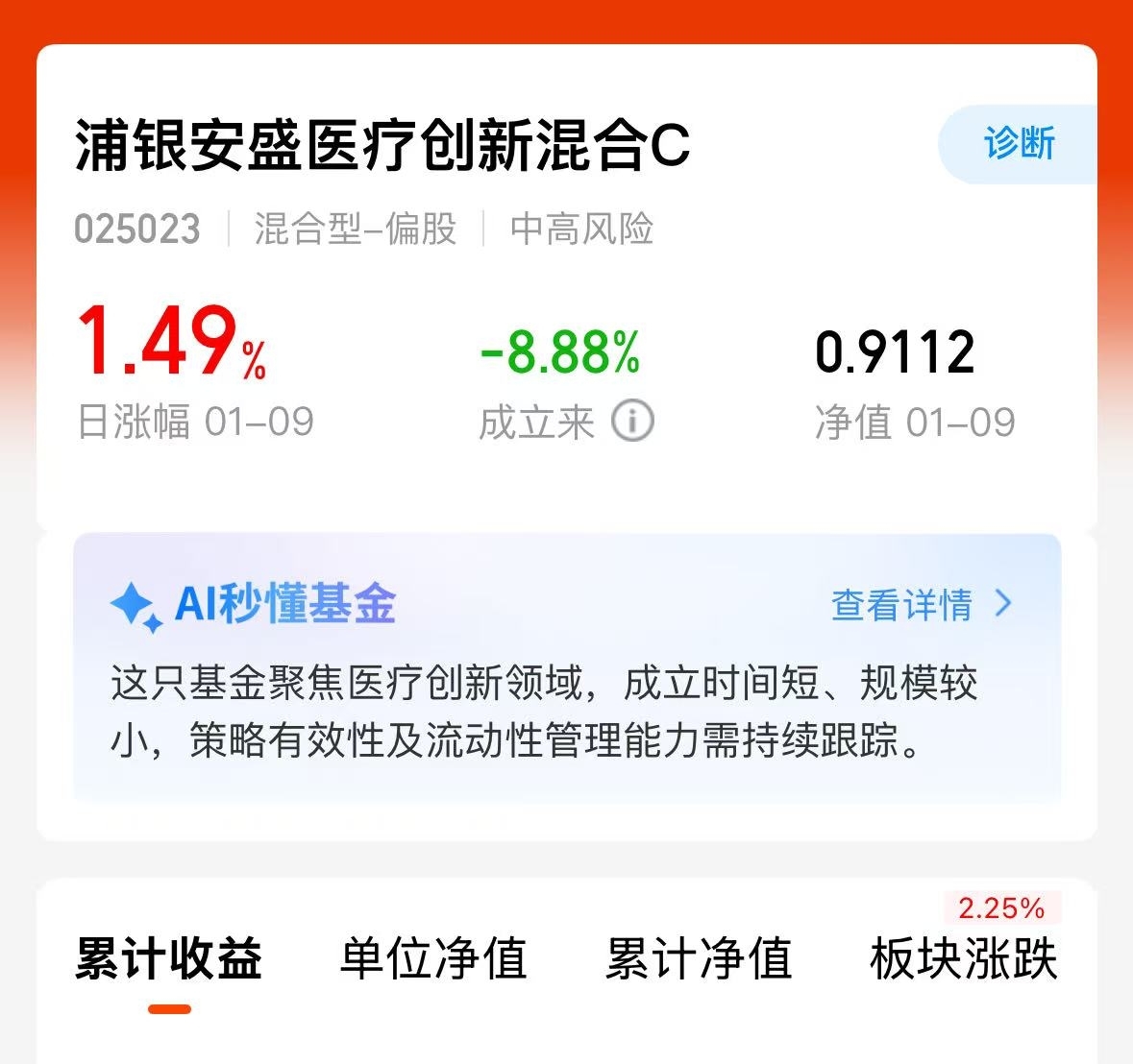 浦银安盛医疗创新今天逆势上涨1.49%~这周涨疯了,还没上车创新药的注意了!创新药有政策明牌支持,后续将会突飞猛进$浦银安盛医疗创新混合C$
