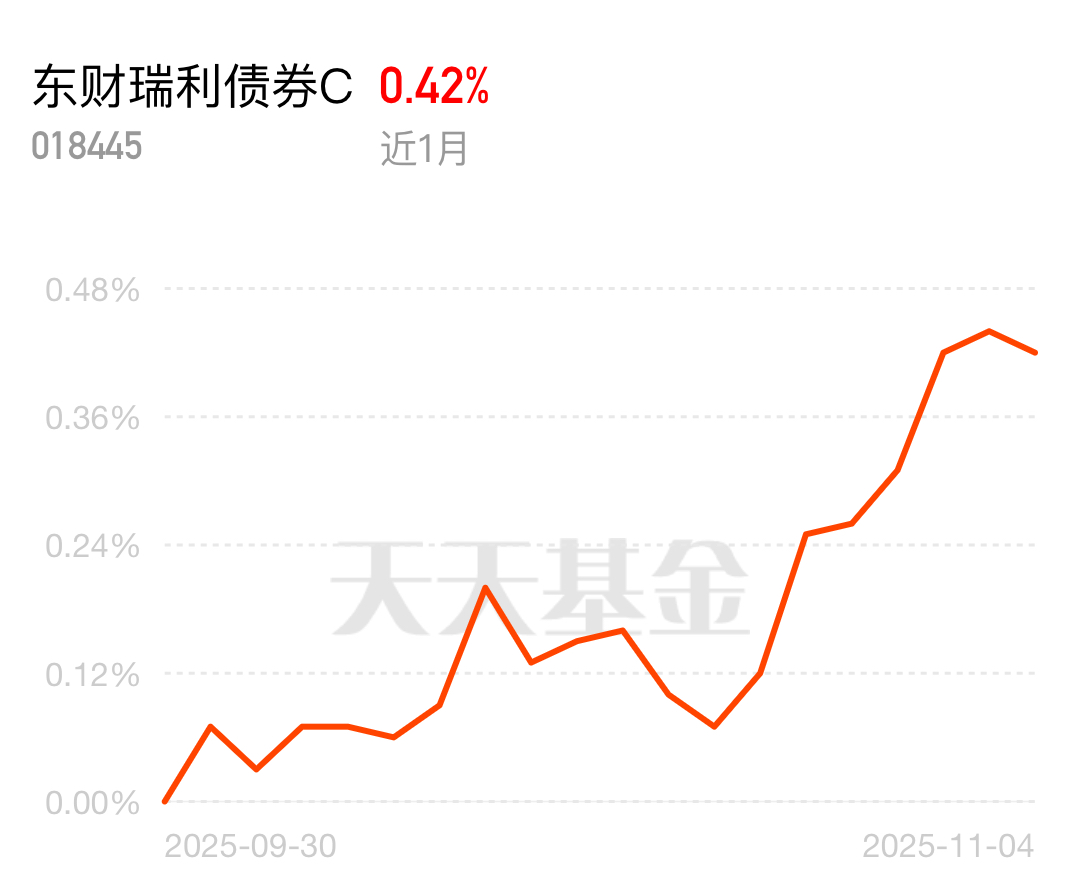 利率债行情起来了,核心是央行重启国债买卖,还有机构在为跨年做准备。西藏东财瑞利债券C可以考虑,近1个月收益0.42%,不仅稳健,7免和转换功能也让投资更灵活。$东财瑞利债券C$