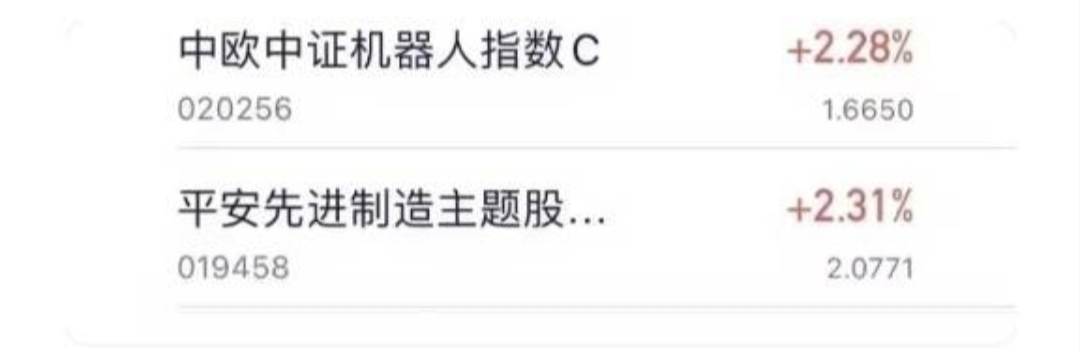 今天机器人板块厉害啊,平安先进制造主题股票C也跟着发力,最新估值直接涨了2.31