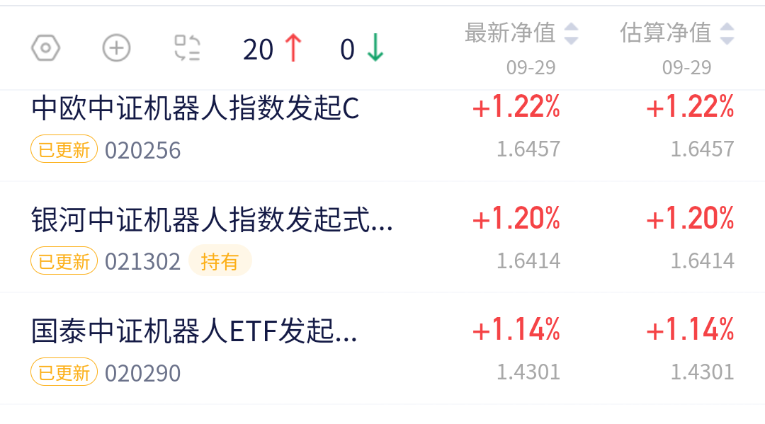 $中欧中证机器人指数发起C(OTCFUND|020256)$上涨1.22%