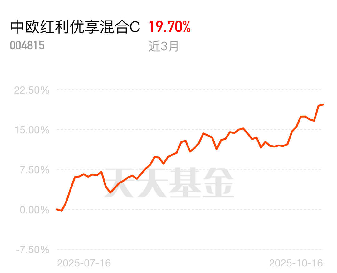 10 月市场不稳,海外也没谱,A 股风格换来换去没主线,红利反倒走俏,涨得比科技基金好!中欧红利优享 C能涨还抗跌,蓝小康这种经理少见,5000-10 红包,闲钱做底仓,每天买点!$中欧红利优享混合C$