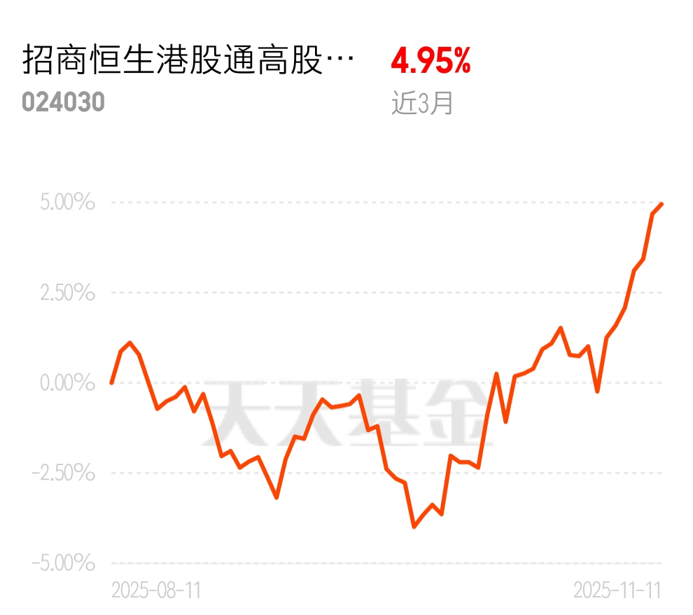 现在投资讲究“稳稳的幸福”生活,高风险高收益已经不再是市场主流大众选择。招商恒生港股通高股息低波动ETF联接C3个月涨4.95%,月月分红,正是大家心中向往追求的稳稳幸福。 $招商恒生港股通高股息低波动ETF发起式联接C$