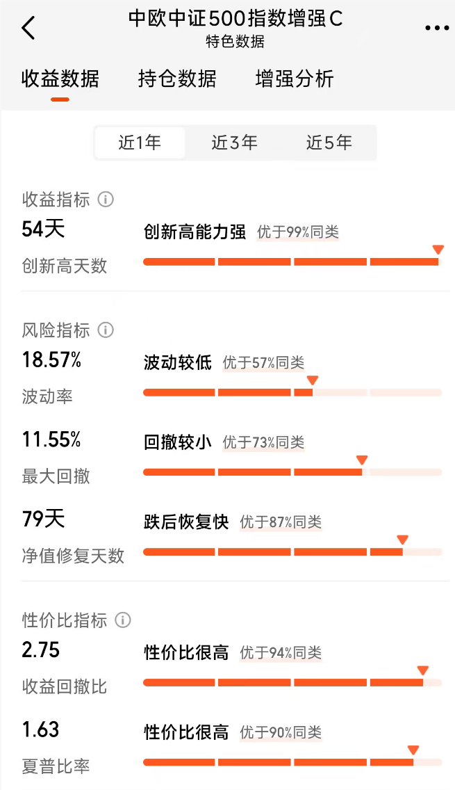今天买了点$中欧中证500指数增强C$(015454)。我就是看中它持续跑赢指数和其他同类产品的能力。近一年收益32.05%,而像易方达中证500量化增强C(012081)只有25%,一年就差7个点。这说明中欧500增强在同类产品中获取超额收益的能力确实突出。市场还在寻找方向,中证500覆盖面广,不容易错过热点,增强基金则是锦上添花。好基金不等人。#今年你的投资目标达成了吗?#