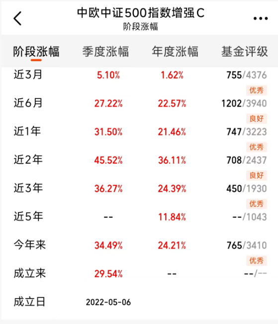 我今天又补了$中欧中证500指数增强C$(015454),理由简单:收益碾压同类。近一年它涨了31.5%,而国泰海通中证500C(014156)只有23%左右,差了好多!同样的中证500指数,增强效果天差地别,中欧的量化团队明显更胜一筹,最近三个月它的表现更是稳居同类第1。它的持仓偏重高盈利、高成长个股,行业控制严格,所以超额收益扎实。当前市场环境下,中证500中盘股成长性强,政策暖风又持续,未来空间看好。这种基金既能跟住指数,又能多赚一块,长期持有复利惊人。别等别人赚够了才跟上,现在就是好时机。#12月你看好哪条投资主线?#
