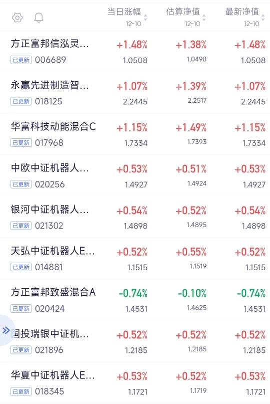 我不懂技术细节,但能感觉到机器人正从实验室往生产线走。中美都在重视这个方向,我就拿点闲钱定投,跌了不怕,涨了就当赚个零花。明年要是真能量产,应该还有看点。$中欧中证机器人指数发起C$ $方正富邦信泓混合C$ 上涨了1.48%,