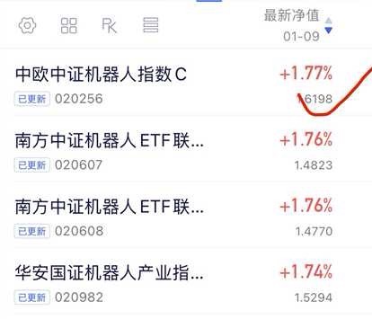 $中欧中证机器人指数发起C$ 上涨1.77%