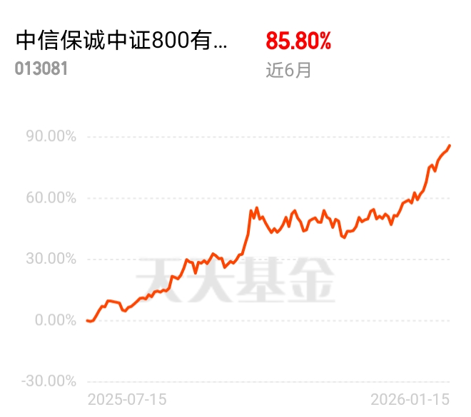 有色板块风头正劲,五连阳一路上行,开盘领涨全场。中信保诚中证 800 有色指数 (LOF) C 稀有金属含量高,紧跟市场趋势,近 6 月涨幅 85.80%,赚钱机会不等人,讨论区福利红包还在发放,赶紧去参与。$中信保诚中证800有色指数(LOF)C$