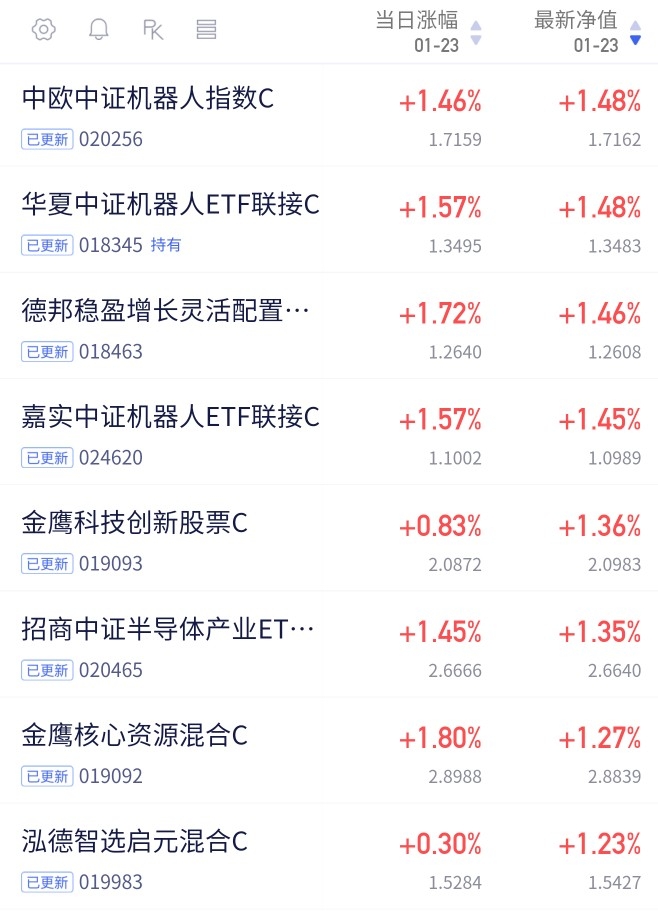 $中欧中证机器人指数发起C$ 1.48%表现也不错下波主角预定了