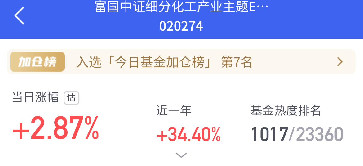 今天A公子三大指数依旧震荡偏弱,但是股市做多力量依旧在,今天也有强势板块,姚姚上周五看到化工板块完全完成了反包的,技术面强势转强,所以周五姚姚选择右侧做多建仓$富国中证细分化工产业主题ETF发起式联接C(OTCFUND|020274)$今天不辜负,直接在大盘偏弱的情况下涨超2%!当下市场科技处于高位,而化工板块目前偏低位,从基本面来说是具备反转+补涨逻辑的,同时属于内需“反内卷”政策受益板块,也属于是周期品里一具备海外需求的高确定性方向,今天再次逆势上涨可以确定的资金愿意流入这个板块,那么久还有向上的空间,资金最近都有着高低切的走势,而且化工位置确实是周和月线的大底,埋伏的捡低价筹码性价比还是很高的。