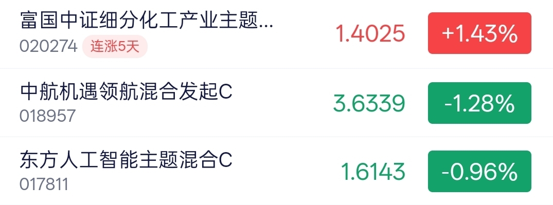富国中证细分化工产业主题ETF联接C$估值上涨了1.43%,最近表现还是很不错的,不仅连续上涨5天,今天估值又是上涨的,