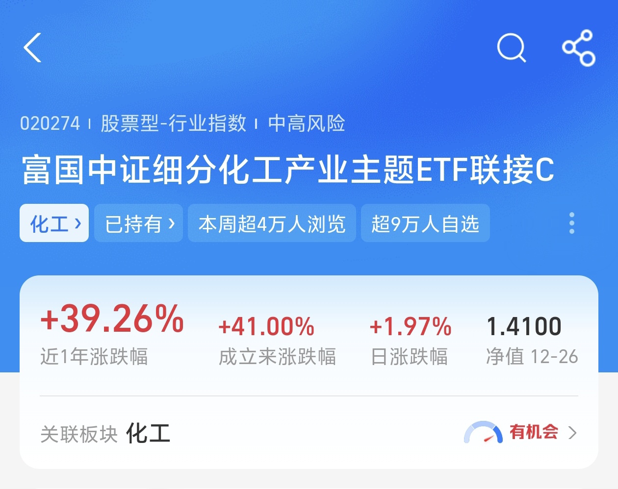 行情震荡,三大指数涨跌不一。今天我也是加仓了$富国中证细分化工产业主题ETF发起