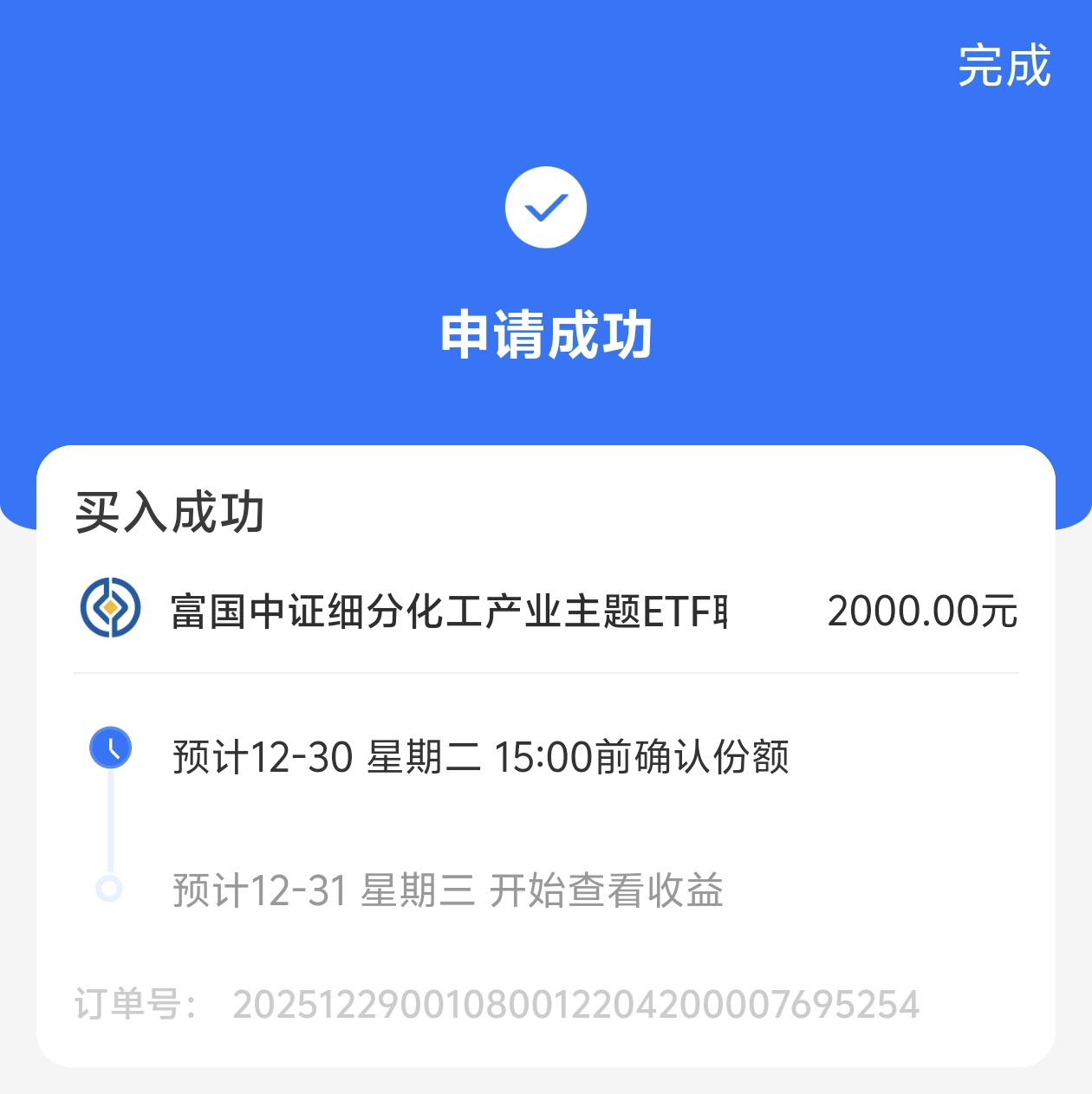 行情震荡,三大指数涨跌不一。今天我也是加仓了$富国中证细分化工产业主题ETF发起式联接C$ +2000元,基金近期表现的也是非常的优秀。近一个月上涨了12.52%,近6个月上涨了42.81%,盈利能力强。各阶段业绩在同类基金排名领先。目前细分化工正处于“新兴需求爆发+国产替代提速”的景气度上行周期。供给端优化,反内卷推动盈利修复,企业营收、利润大幅增长。叠加美联储降息周期,开启美元走弱,推动资金回流与板块估值修复。将迎来新一轮的上涨。长期持有,投资回报率高,期待后期收益。