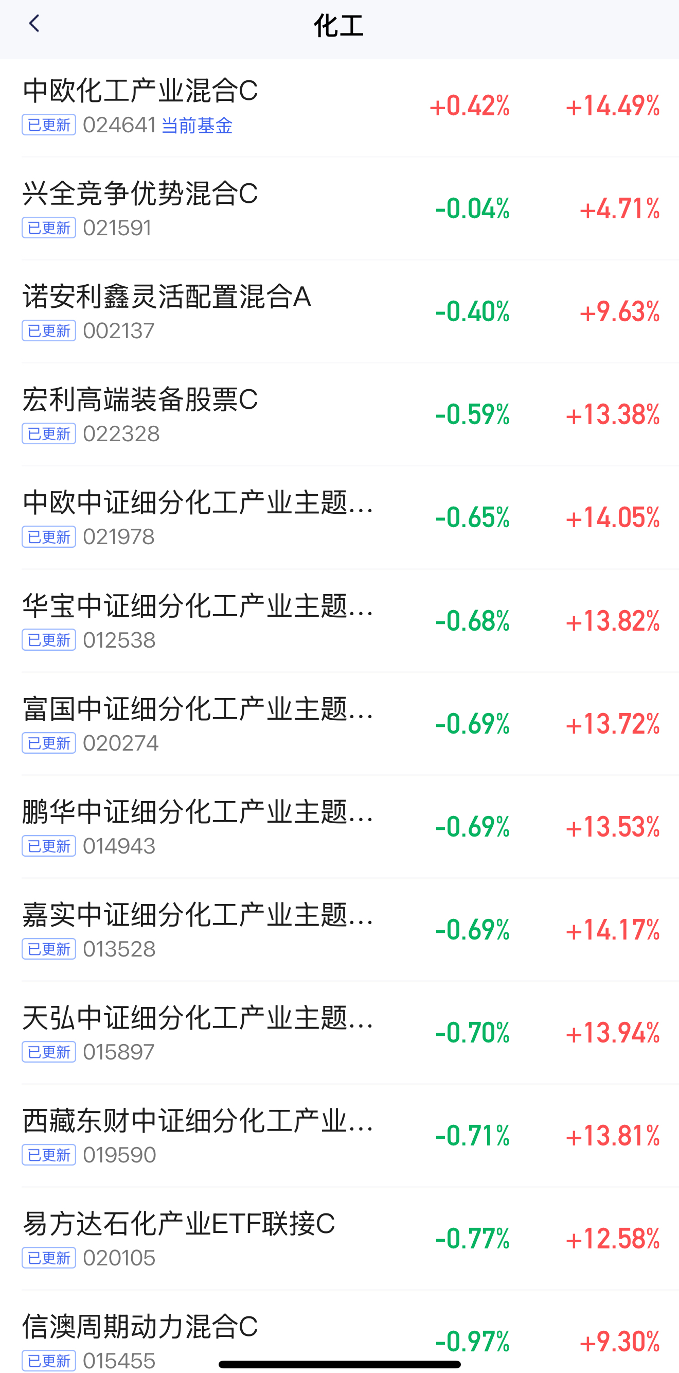 中欧化工产业混合C:今日上涨0.42%!